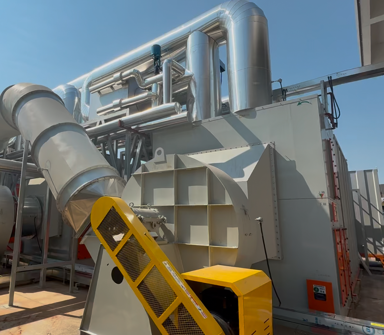 - 热风系统:RTO尾气加余热换热器,配合热交换器